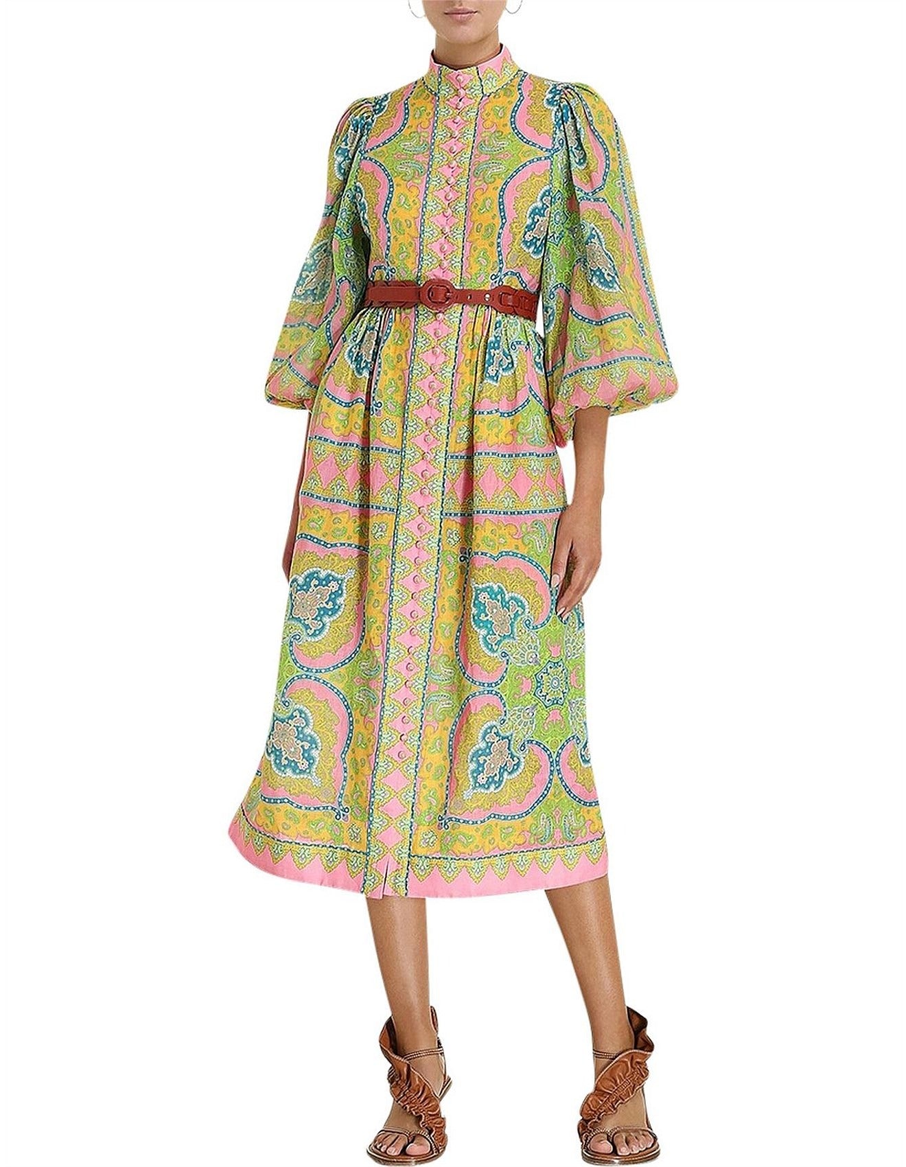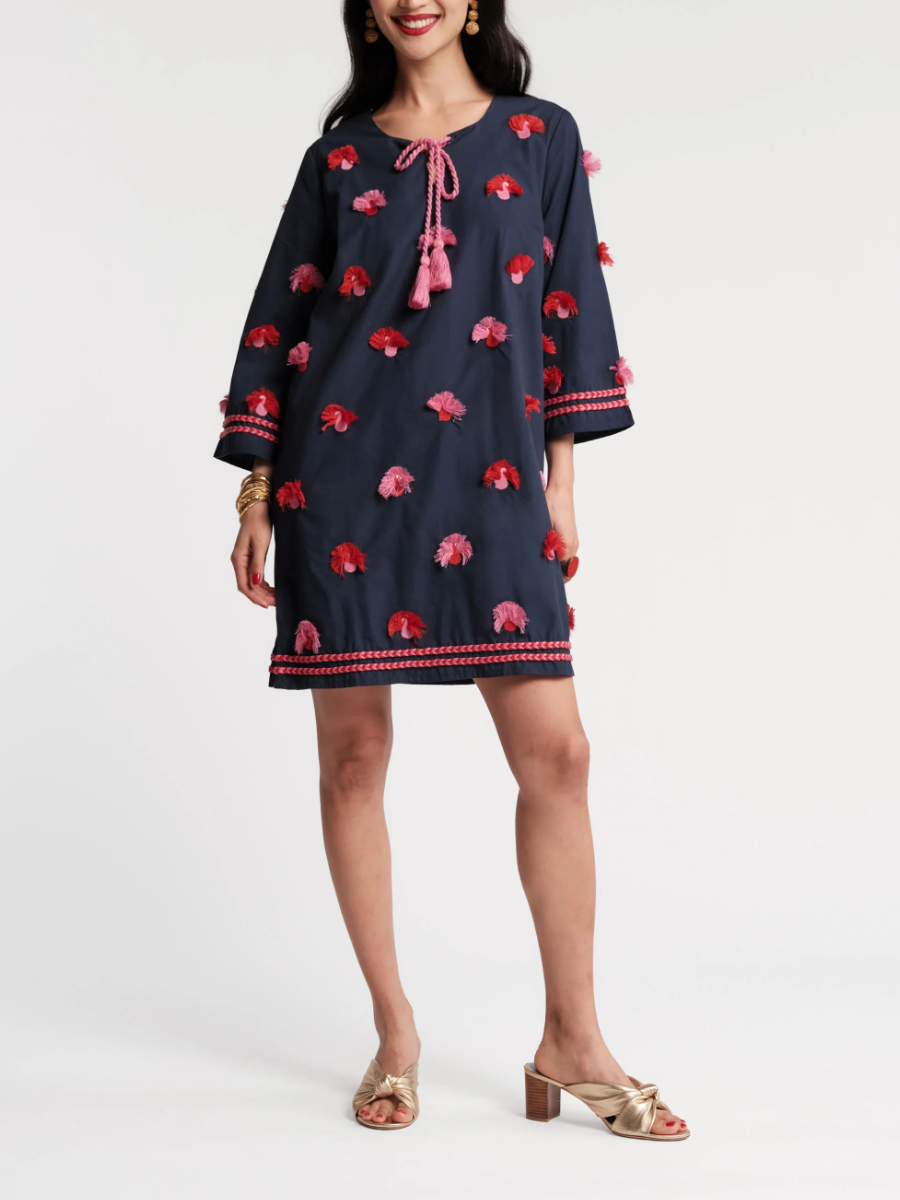 Fringed Trim Eyelet Detailing Silt Hem Maxi Dress