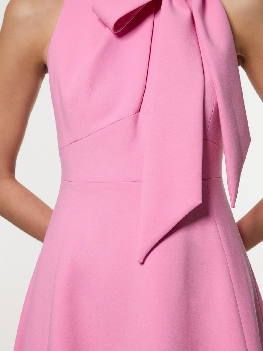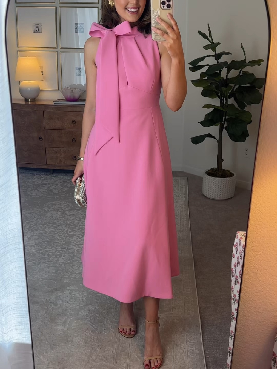 Compact Stretch Bow Tie Neck Full Skirted Midi Dress