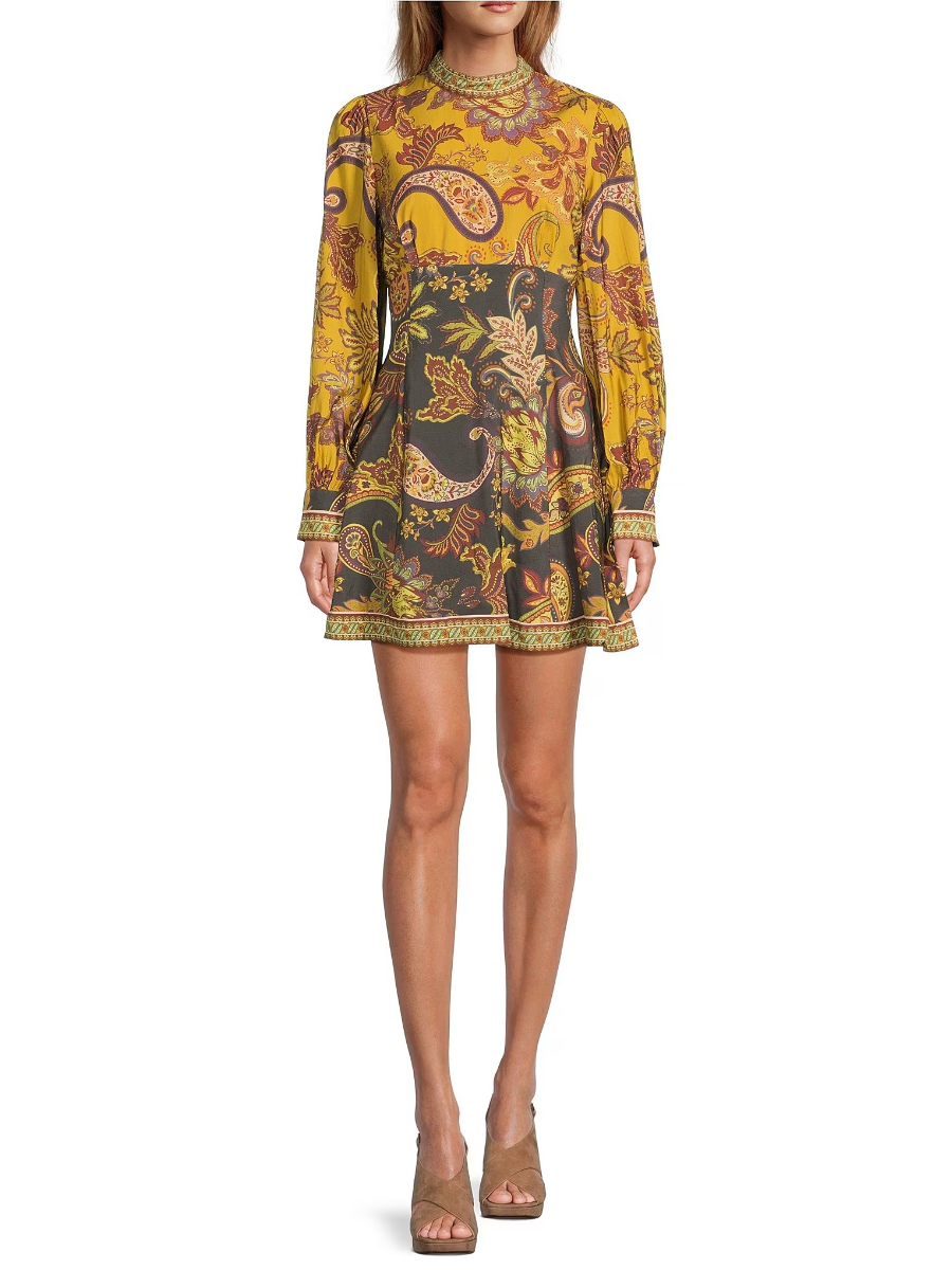 • Paisley Mock Neck Long Sleeve Dress