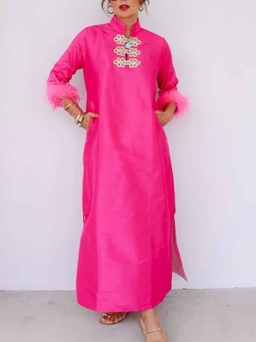 • Fashion Buckle Pink Dress