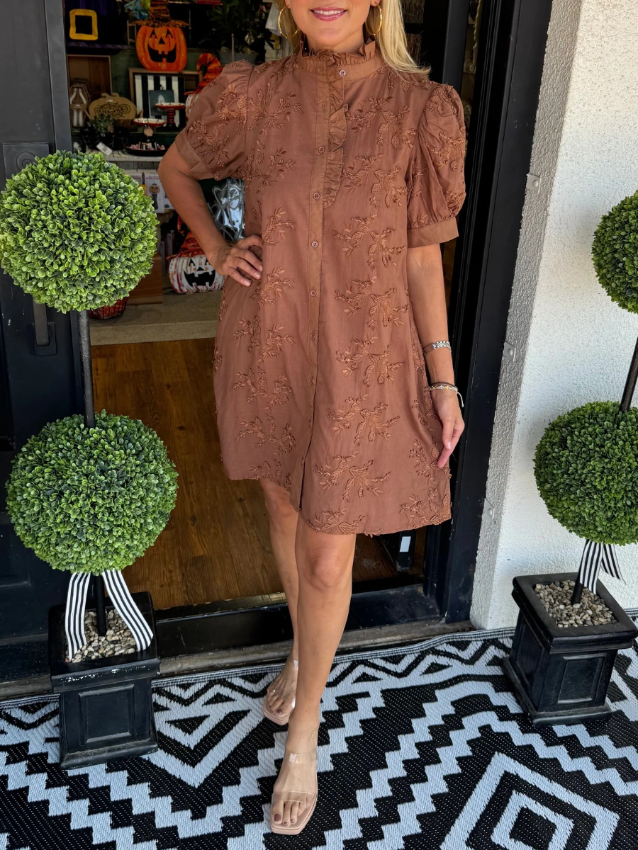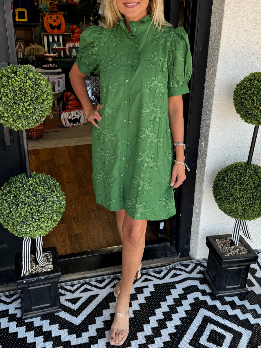 Chic Floral Embroidered Puff Sleeve Mini Dress
