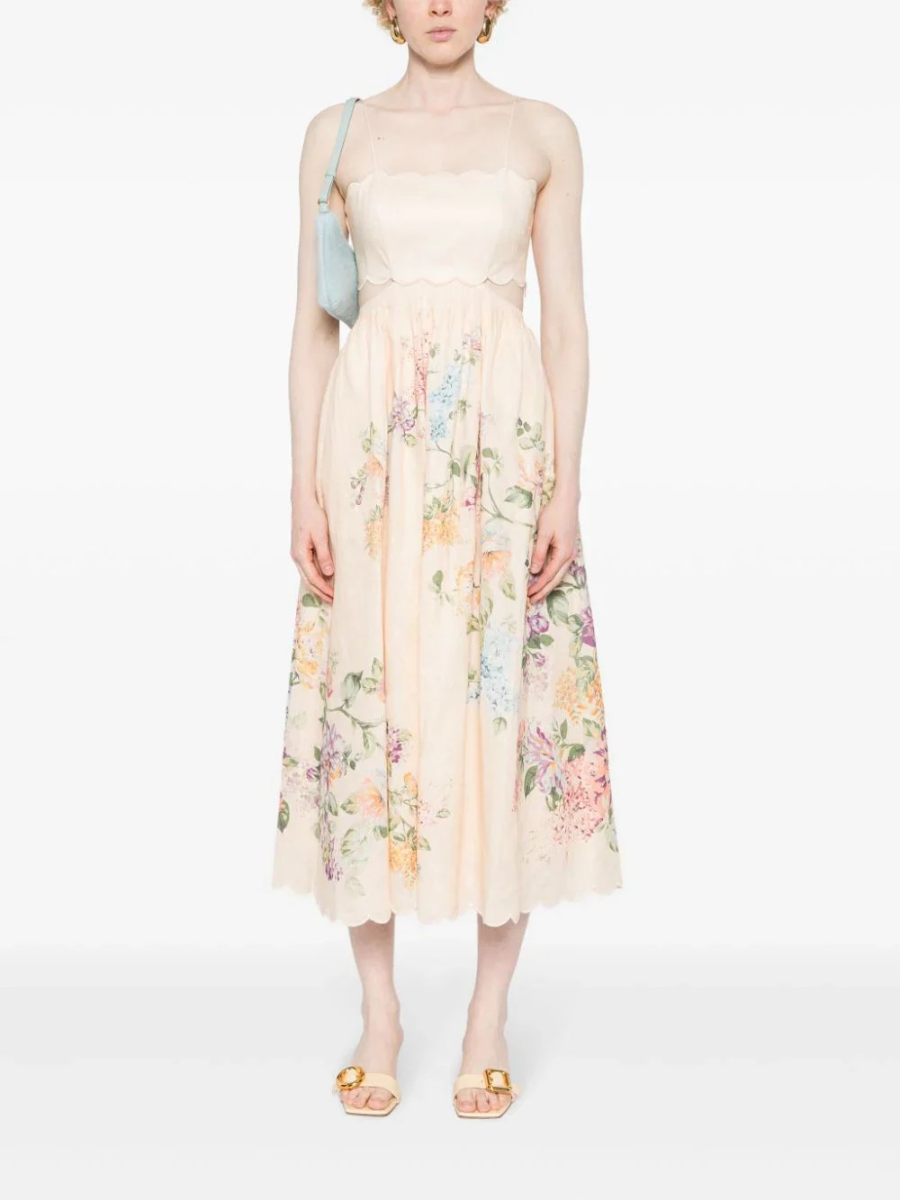 Spaghetti Strap Floral Scallop Dress
