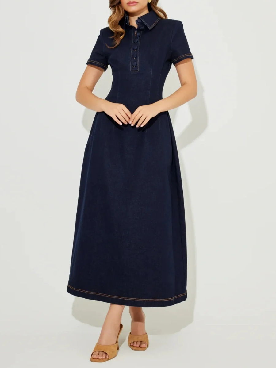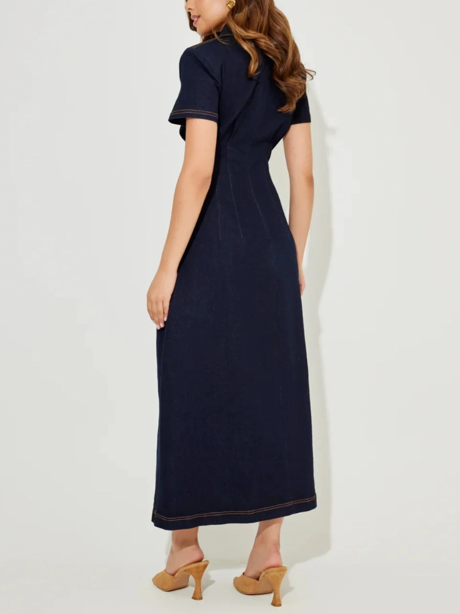 The Ultimate Muse Denim Collared Midi Dress